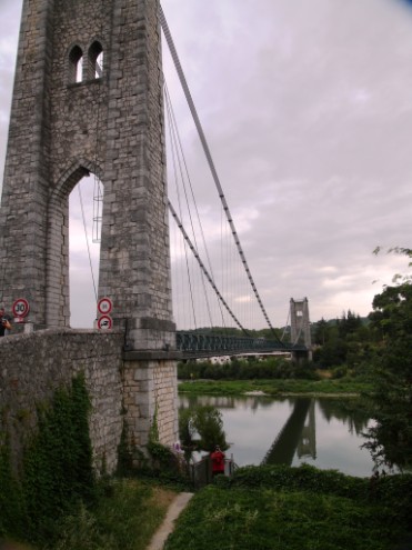 Die Ardèche wollten wir uns auf keinen Fall entgehen lassen. Das erste Highlight erwartete uns mit der Stahlbrücke über die selbige bei St.-Martin-Ardèche. Die "Überfahrt" ist ampelgeregelt.
