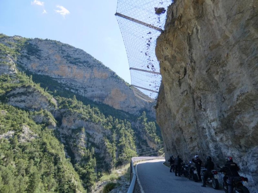 Der Zeitpunkt war gekommen an dem wir nach der Weiterfahrt endlich besserers Straßenmaterial unter die Reifen bekommen sollten. Hierzu hatte man die B-400 zwischen Gósol und ihrem Auftreffen auf die C-16 mit extrem guten Belag versehen, Kurven und Landschaft . . . obligatorisch. Auf den 25 Kilometern läuft es deshalb ziemlich gut. Dass wir am Ende einen kleinen Verfahrer auf der B-401 Vallcebre hatten, tat dem ganzen Spaß keinen Abbruch. Und zum Ende hin fährst du nochmal durch die Schlucht, die der Torrent de Bossoms geformt hat. Hier haut es dir den Kopf nicht nur wegen der Kurven hin und her.
